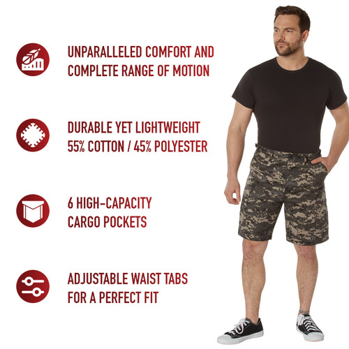 $31.99 - $35.99We carry a variety of digital camo BDU shorts. They are made to the same specifications as the G.I. BDU trousers. The digital camo BDU shorts are great because of their loose fit and large cargo...