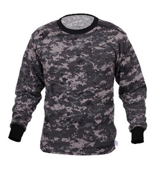 $17.99 - $18.99The long sleeve urban digital camo shirt is 60% polyester and 40% cotton. It has a double needle sport collar to prevent neckline from sagging, a full cut body, knitted cuff and color fastness for...