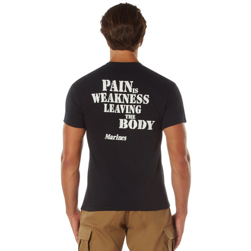 $22.99 - $24.99Officially licensed by U.S. Marines “Pain is Weakness” T-shirt features a two sided print with a Marines logo on the front chest and “Pain is Weakness” slogan on the back. For those serving past and...